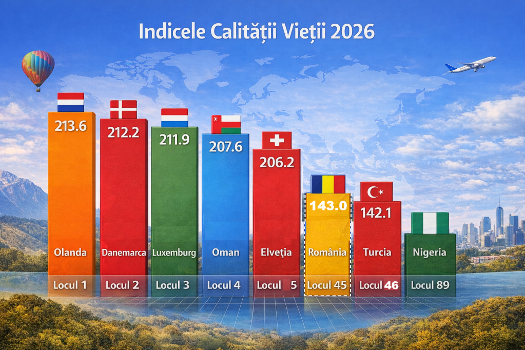 În perioada 2021–2026, România a avut o traiectorie relativ constantă în Indicele Calității Vieții, cu variații mici de la un an la altul, dar fără prăbușiri. Dacă în urmă cu cinci ani România se afla mai aproape de coada clasamentului european, astăzi se poziționează în zona mediană superioară globală, în jurul locurilor 45–65, în funcție de an și de metodologia exactă. Aceasta este o schimbare structurală, nu una cosmetică.